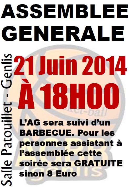 L'AGBB tiendra son Assemblée Générale ordinaire samedi 21 juin à 18 heures dans l'enceinte du gymnase patouillet, à l'issue de la journée "Olympiades".